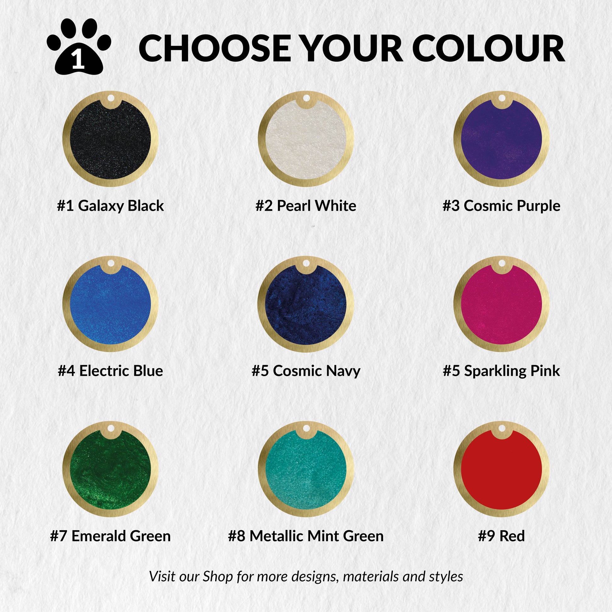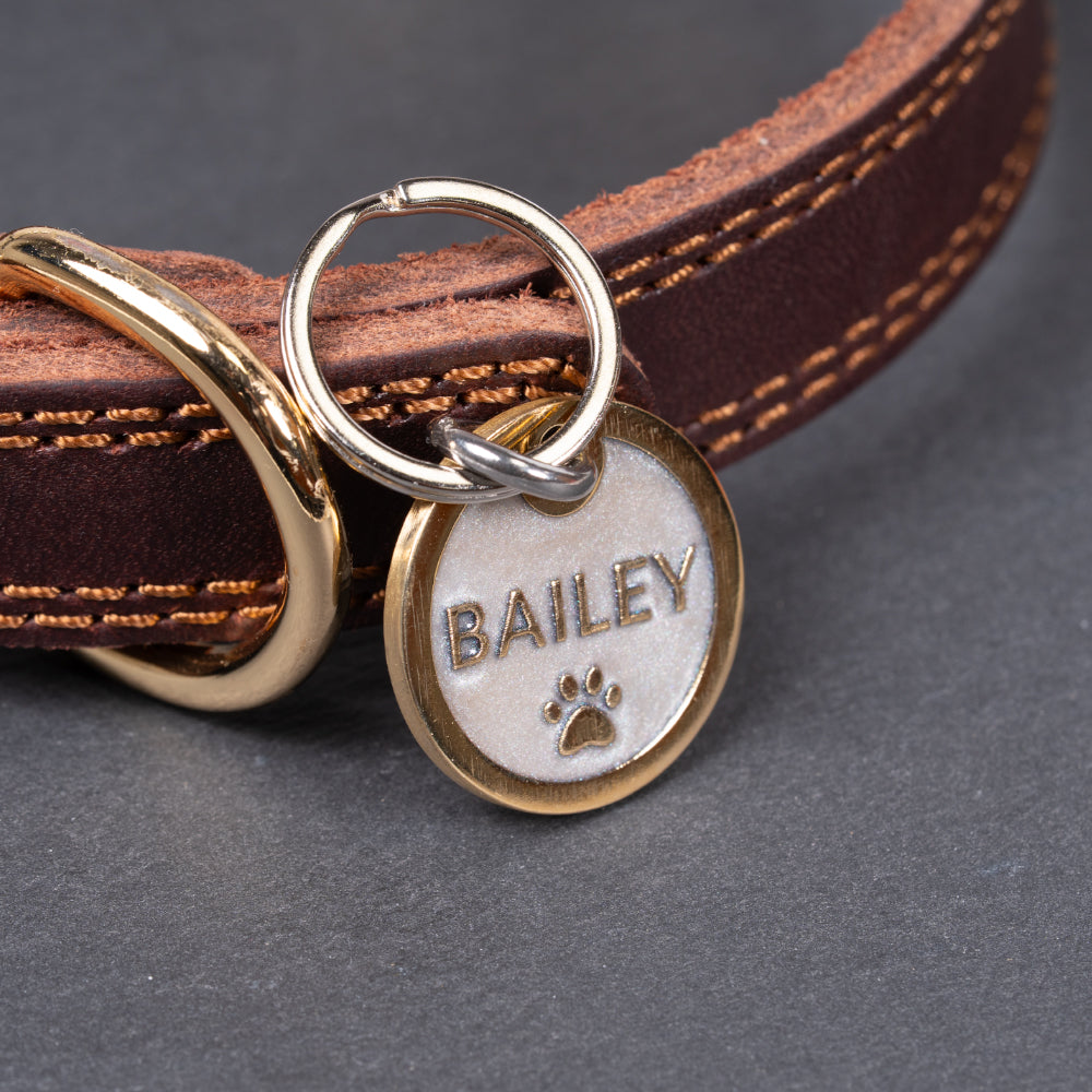 Check out our beautiful ID tag, custom engraved with your details. Made from 2mm thick premium-quality brushed brass and custom mixed paint, it will bring a touch of elegance to your pet’s collar, whilst ensuring you can be easily contacted should they decide to wander! Choose from 3 sizes and 9 stunning colours.